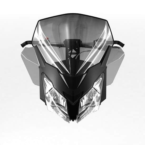 - Hög rökfärgad vindruta utan sidovindavvisare.